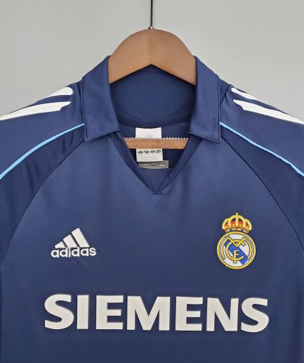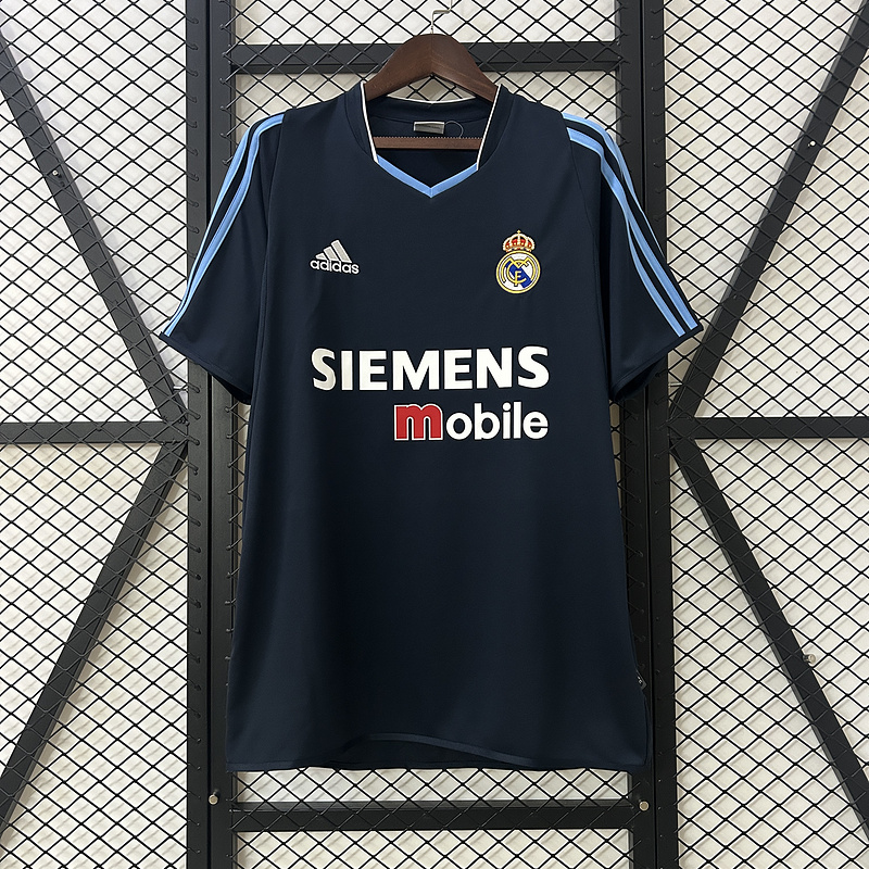 The Real Madrid Away Jersey from the 2003-2004 season is an iconic piece from the era of the Galácticos. Featuring a sleek black design with subtle white details, this jersey was worn by legends such as Zinedine Zidane, Ronaldo Nazário, David Beckham, and Roberto Carlos. This season saw Real Madrid display moments of brilliance, with the team competing fiercely in La Liga and the UEFA Champions League. The jersey was part of their thrilling campaign, where their attacking football captivated fans worldwide. The breathable and lightweight material ensures top comfort, while the premium embroidery on the crest adds a touch of elegance. RabonaJerseys guarantees elite-level quality, strict quality control, and high-standard nameset printing to match the original design. Whether you’re a collector or a die-hard Madridista, this away jersey is a must-have from one of the most star-studded teams in football history.