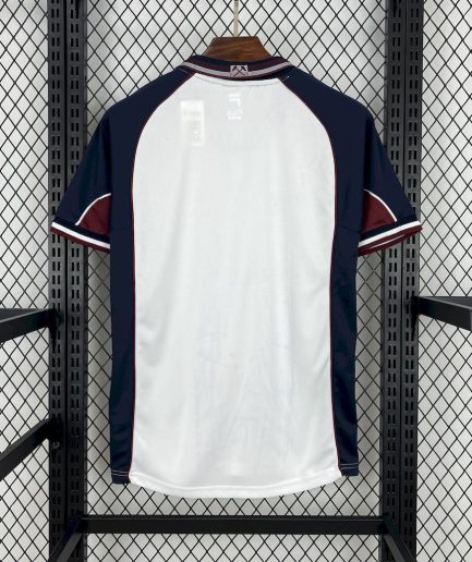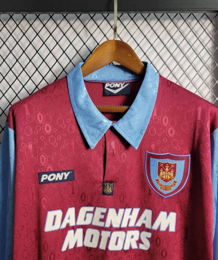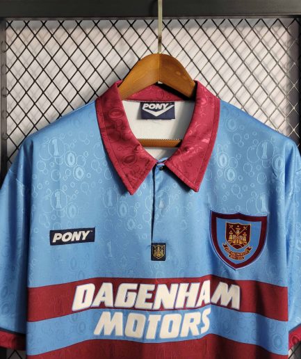 This West Ham Home Retro Jersey 1995-1997 Replica is a must-have for any loyal Hammers fan looking to relive the club’s memorable moments from the mid-’90s. This classic design brings back memories of West Ham’s solid performances in the Premier League, featuring a bold claret base with sky blue sleeves. The 1995-1997 era saw the team stabilize in the top flight under the management of Harry Redknapp, with key players like Julian Dicks, John Hartson, and Slaven Bilić leading the squad. West Ham finished 10th in the 1996-97 Premier League season, proving their strength in English football. This high-quality replica captures the essence of that era, perfect for matchdays, casual wear, or display.